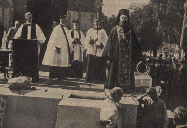 Father Davis was present in his own vestments (as the accompanying photograph shows), and addressed his own people, urging them to more regular attendance at the services of the American Church. At the Holy Eucharist following he occupied a stall on the right hand of the rector, and after the Gospel advanced to the altar and read the Epistle and Gospel in Greek. Thus Georgia seems to be “setting the pace” for intercommunion with the Orthodox Church, not by talking or discussing, but by “doing things” in a quiet matter of course way.