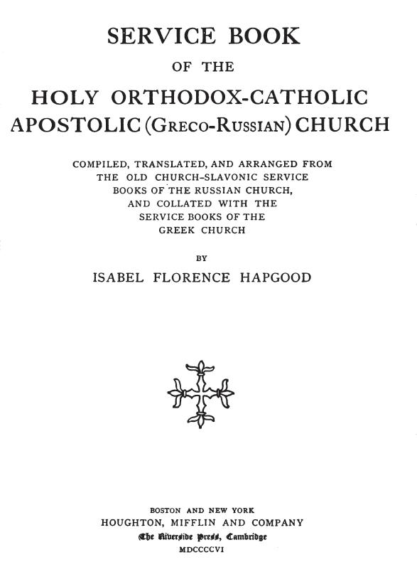 The Service Book compiled and translated by Miss Hapgood for use in public worship of the Russian Church in North America is a timely recognition of the presence in this country of an increasing number of adherents of the Eastern Church, and of the fact that English is the only language that communicants in America may hope to have in common. In her important project Miss Hapgood has had the backing of the Holy Synod of Russia, by whom part of the expense of publication is defrayed. Count Sergius I. Witte has been a liberal contributor, and dignitaries like the Archbishop of North America have given sympathetic scholarly aid.