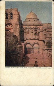 Postcard featuring the replica “Church of the Holy Sepulchre,” part of the “Jerusalem” exhibit at the 1904 World’s Fair in St. Louis.