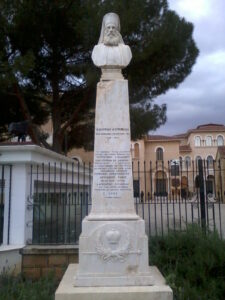 In early July, Governor Mehmet finally received permission from the Sublime Porte to commence executions. The European consuls in Cyprus offered asylum to Archbishop Kyprianos, but he declined. On July 9, the executions began with the hanging of Archbishop Kyprianos outside the governor’s palace. One account describes the Archbishop’s final moments in this way: “Taking in his hand the noose from the executioner, he made three times the sign of the cross… and then turned to his executioner and in a firm voice said, ‘Execute the command of your cruel master.’”