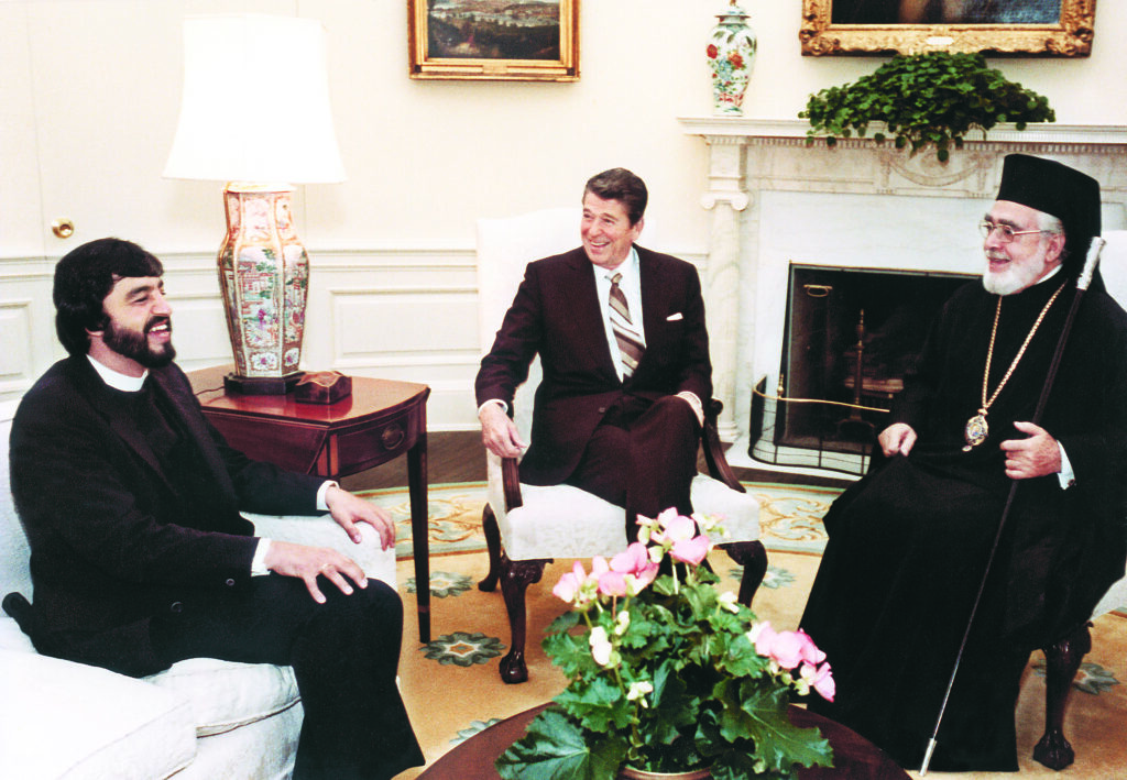 Of course, Carter lost the 1980 election to Ronald Reagan – a man to whom Fr Karloutsos had no connections at all. “I’m watching TV and I’m going, what do we do now? Now we have a relationship with Carter. Nobody knows Reagan.” Karloutsos happened to notice that, when Reagan visited the Senate, he was accompanied by a Greek-American lobbyist, Tom Korologos (who passed away on July 26 of this year). Fr Karloutsos cold-called Korologos, who helped connect him with the Public Liaison Office of the Reagan White House. First, Karloutsos went to the Religious Affairs people, but the man he spoke with assumed that Greek Orthodox people weren’t Christians. So he tried Ethnic Affairs, where he developed a relationship with Reagan advisor Jack Burgess. It was thanks to Burgess and Korologos that Fr Karloutsos got access to key players in the Republican Party, including Reagan’s vice president, George H.W. Bush.